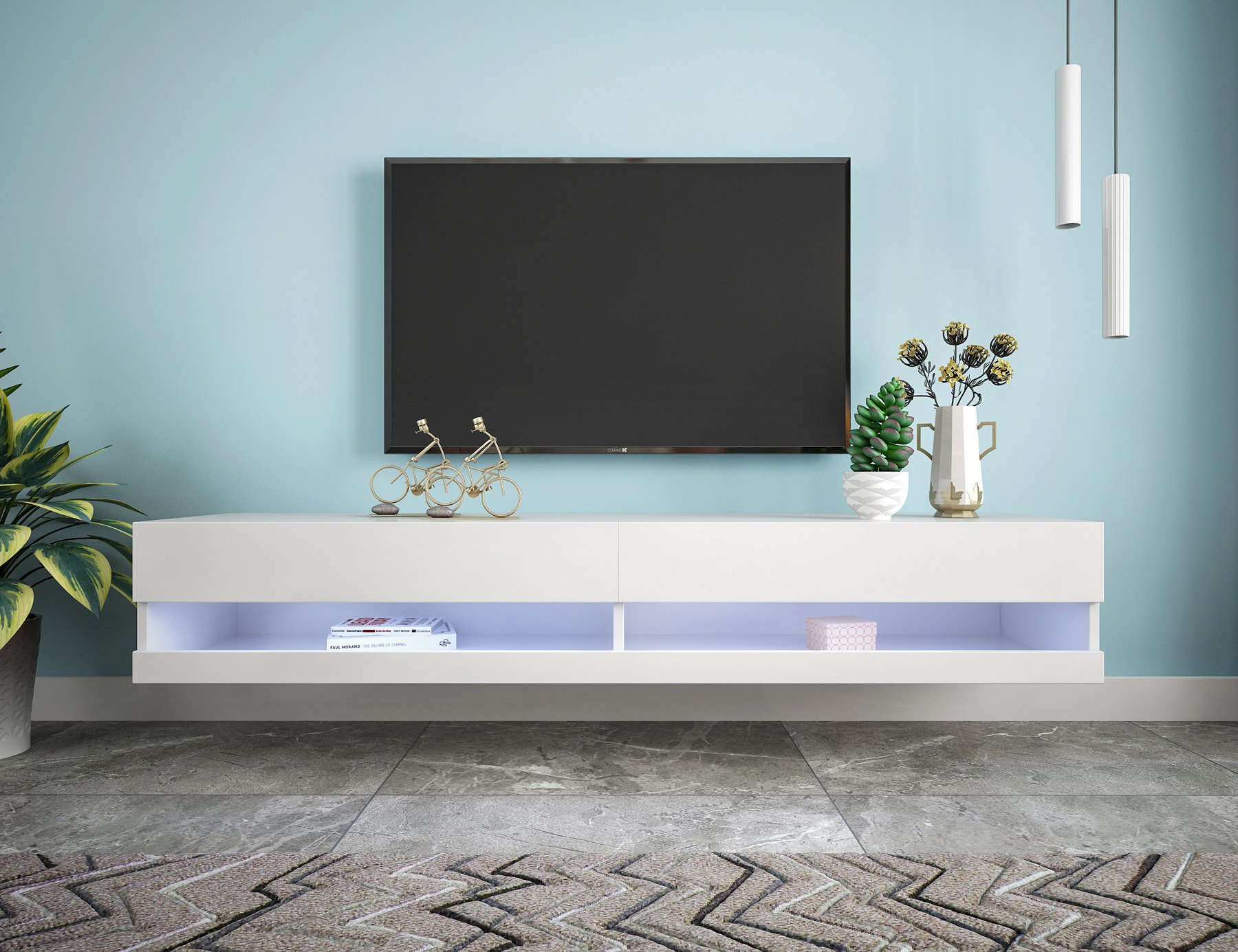 Floating TV Stands good for up to 80" TV, Floating Entertainment Center Walls,With LED lights, 16 kinds of monochrome and 4 kinds of color change, Wall Mount TV Stands,Wall Mounted Media Consoles & Hanging TV Consoles