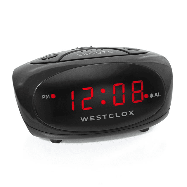 Black alarm clock with red led display