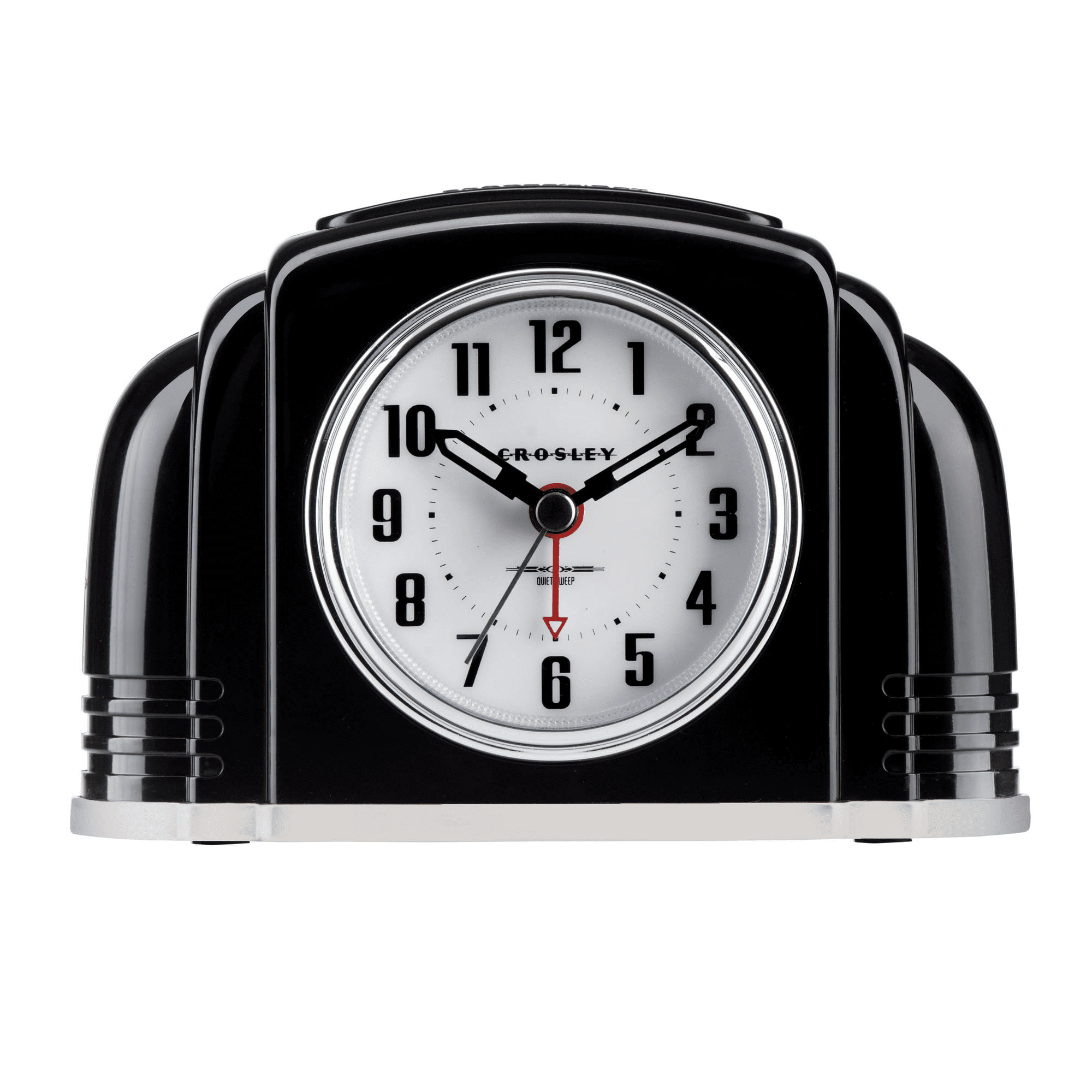 Home > Crosley Black Vintage Art Deco Analog QA Desk or Bedside Alarm Clock, Non-Ticking with Backlight