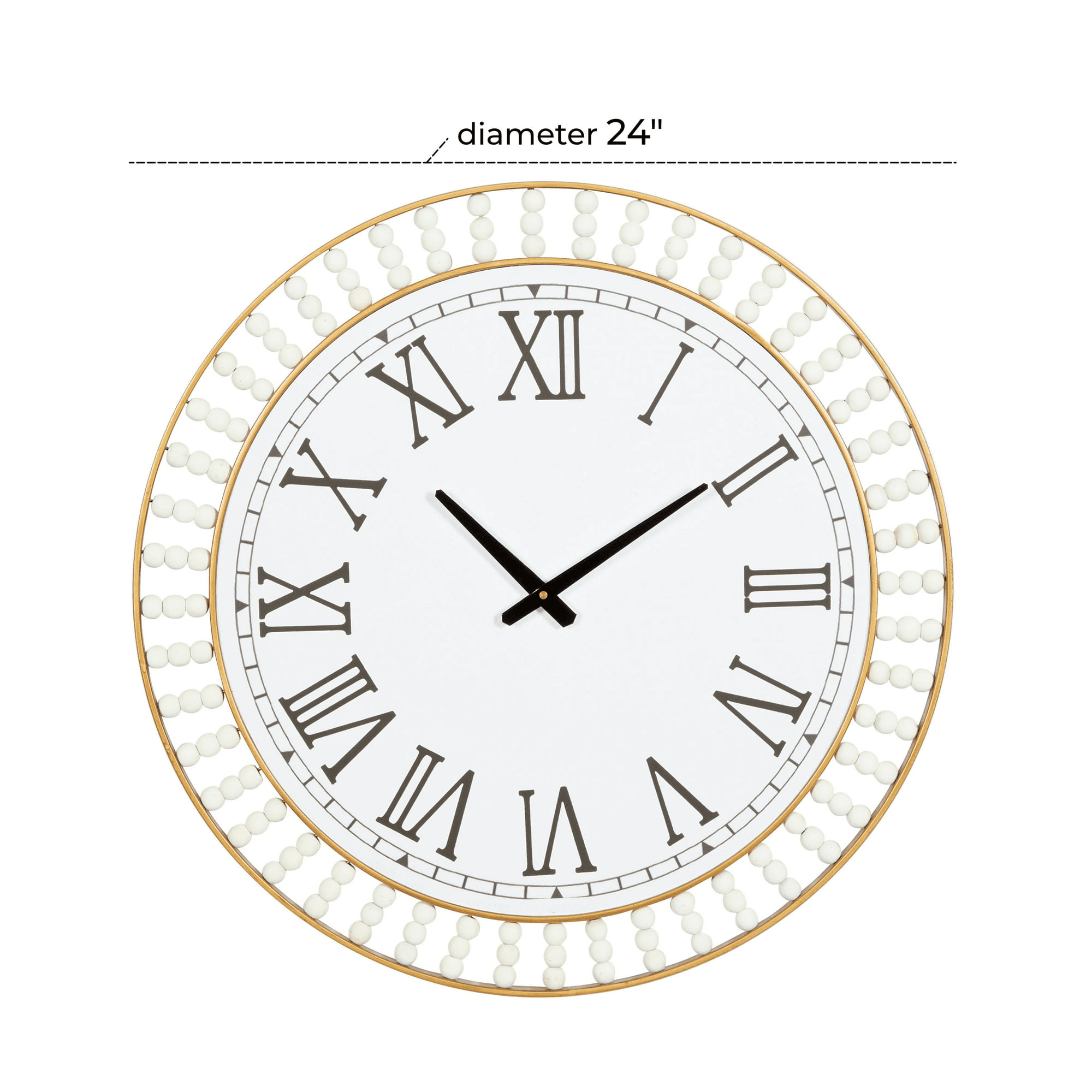 DecMode 24" White Metal Wall Clock with Gold Frame and Radial Beading