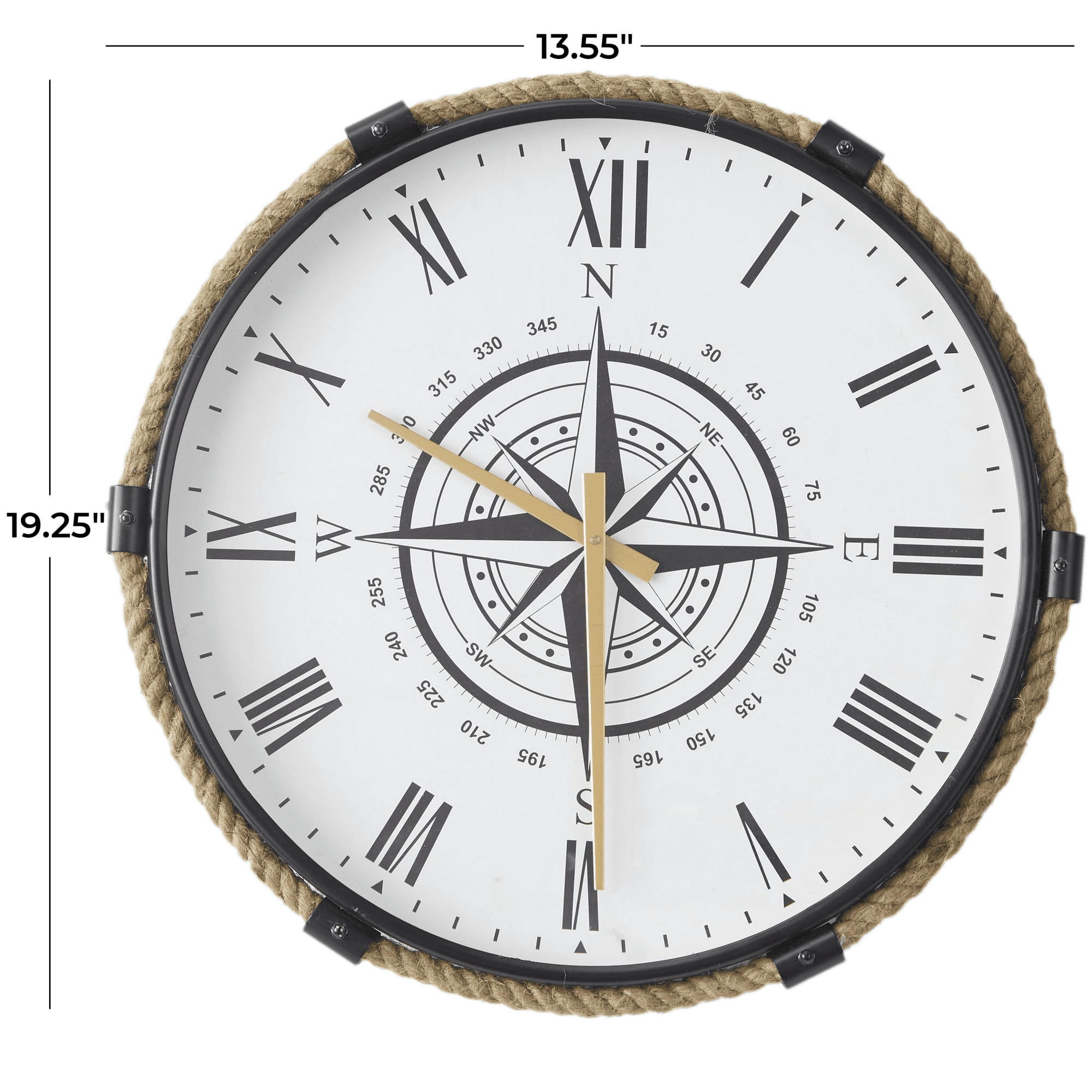 DecMode Stainless Steel Nautical with Printed Compass Design Arabic Numbered Wall Clock 20"W x 19"H, with Brown, Black, White and Gold Finishes DecMode Stainless Steel Nautical with Printed Compass Design Arabic Numbered Wall Clock 20"W x 19"H, with Brown, Black, White and Gold Finishes DecMode Stainless Steel Nautical with Printed Compass Design Arabic Numbered Wall Clock 20"W x 19"H, with Brown, Black, White and Gold Finishes