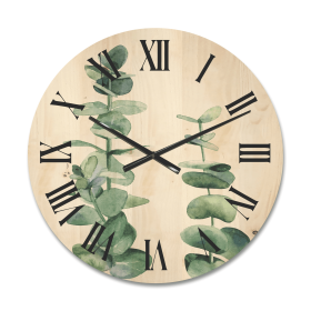 Designart 'Green Eucalyptus Branch' Tropical Wood Wall Clock