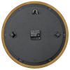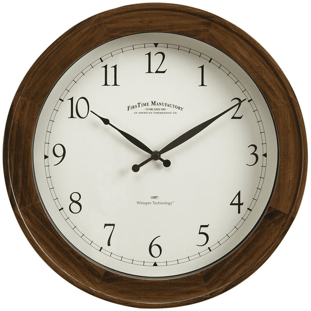 It’s in the details – this round clock is crafted of solid wood with a glass lens, white face, black hands and numerals, and a walnut wood finish. It also features our whisper technology™, so there is no audible ticking sound.