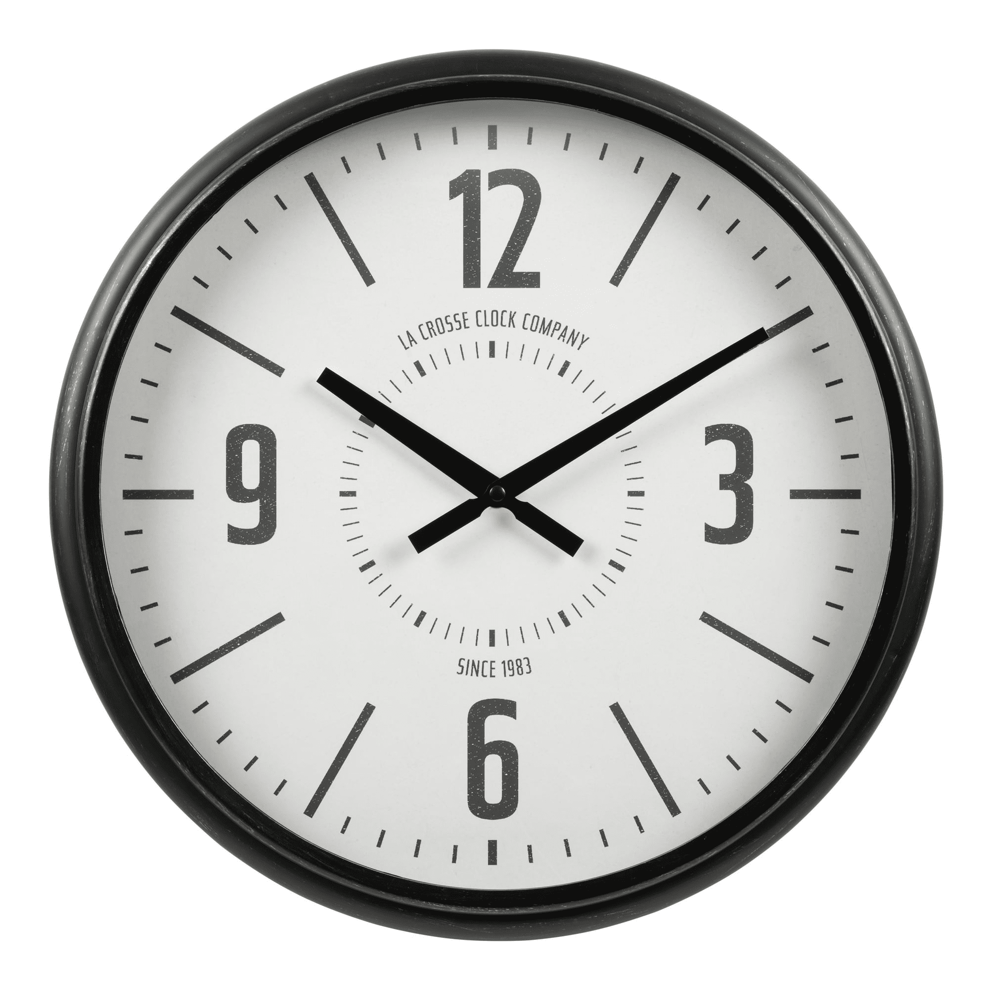 Classic styling meets quartz precision in la crosse clock company’s sullivan 16-inch analog wall clock. Industrial concept with antique dial featuring four large hour markers (12, 3, 6, and 9) and weathered black framework will compliment your space. Oversized clock is viewable from a distance, but lightweight to hang on almost any wall. Quartz time keeps you on schedule and provides a single battery powered operation.