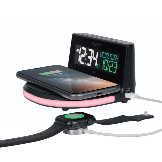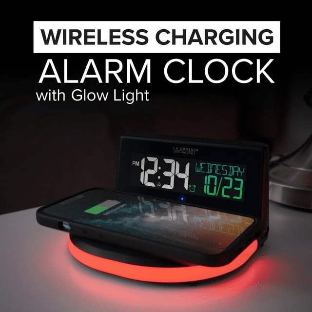 La Crosse Technology Wireless Charging Alarm Black LCD Clock with Glowing Lighted Base, 617-148 La Crosse Technology Wireless Charging Alarm Black LCD Clock with Glowing Lighted Base, 617-148 La Crosse Technology Wireless Charging Alarm Black LCD Clock with Glowing Lighted Base, 617-148