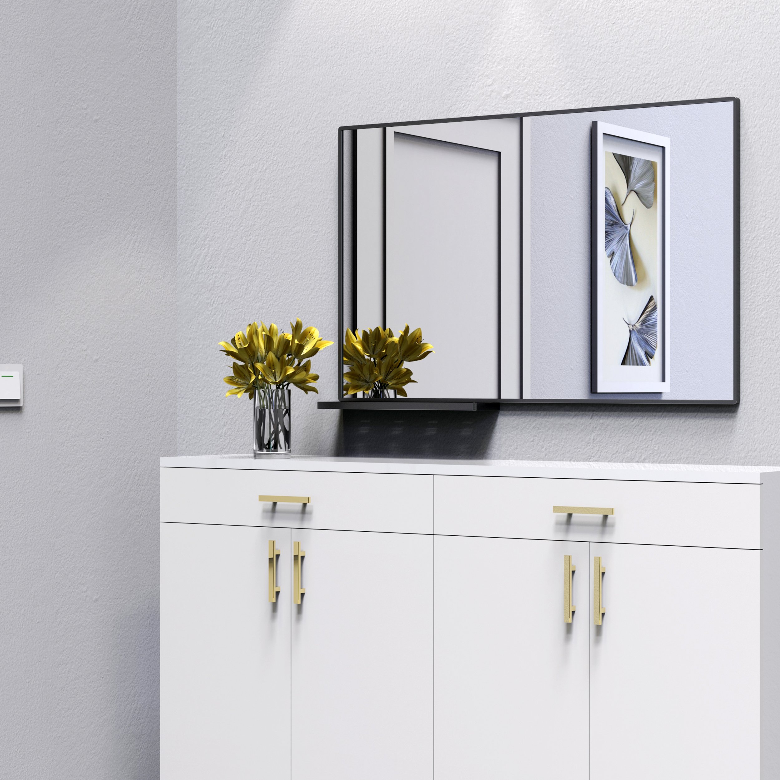 Modern Bathroom Mirror With Storage Shelf Rectangular Black Wall Mirrors for Bathroom Living Room Bedroom Hanging Mirror Aluminum Frame 48x30 Inch