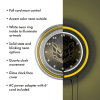 Product details - materials: high grade glass, chrome, molded resin. Dimensions: (diameter)14.5? X (depth)3?. Battery operated quartz clock mechanism. Requires 1 aa battery (not included). Ac power adapter with 6? Cord included. Wall hanging mount on back