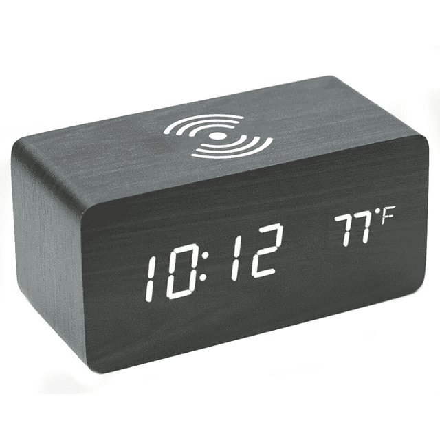 Zunammy Wooden Finish Alarm clock with Wireless Charging (Qi Charging Pads) for phone - Black Zunammy Wooden Finish Alarm clock with Wireless Charging (Qi Charging Pads) for phone - Black Zunammy Wooden Finish Alarm clock with Wireless Charging (Qi Charging Pads) for phone - Black